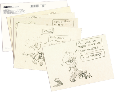 The Mank Museum of Comics and Animation is one of the world's most prestigious museums for the popular arts, and holds among their collections important pieces by Clarence ‘Otis’ Dooley and drawings from p.u.d Film productions such as Spaceman Jax and the Galactic Adventures or Brigadier Buffalo.