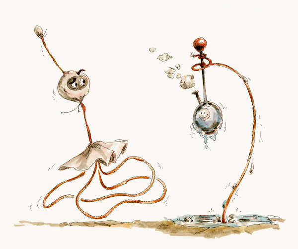 The ropes seen in Cooper MacDougall's Spooky Ghosts scenes were another inspiration from the MacDougall children. When it came time to teach his twins Micky and Ricky to tie their shoes, MacDougall found it a challenge to explain the technique, so he told them stories about their shoelaces - going to school or having birthday parties - and all the ways their shoelaces could be a part of Micky and Ricky's lives. Eventually these stories became the cooperative ropes in the ghosts's world - tying their sheets into fashionable attire, as well as helping around the house by lifting and carrying heavy loads.