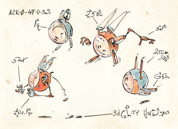 Would it be a faux pas for a robot to accidentally lose a washer or drip oil, the same way we get embarrassed if we accidentally spit or sneeze or fart? In some of these drawings by scientist Verdie Z. Goodsey, that would seem to be the case. Of course, if the cultural comparisons are really similar - it must actually be much more embarrassing for the AZR-0 robots. After all, we don't have to collect our spit and reinstall it.