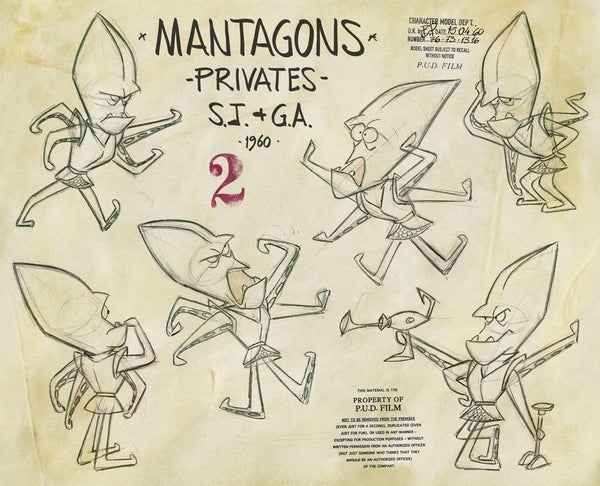This reproduction of the original Mantagon model sheet #2- Privates drawn by designer Philip La Carta is a giclée print edition.