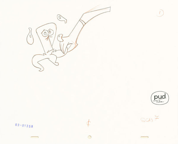 This rare piece of production artwork is stamped with the PUD Film company logo and an archival number from the Archival Department of PUD Film. The drawing comes with a certificate of authenticity.